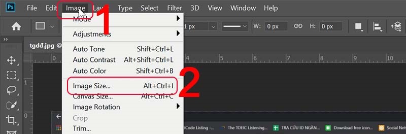 Bước 3: Chọn vào Image > chọn tiếp Image Size.