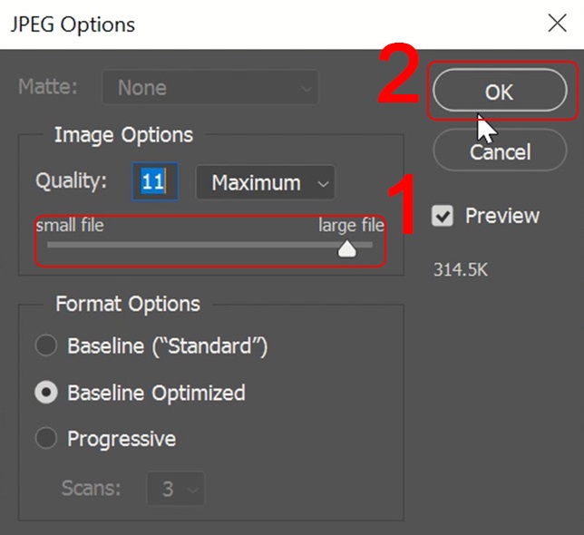 Bước 6: Chọn Chất lượng ảnh muốn lưu về > nhấn OK.