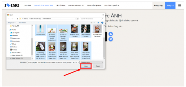 Bước 3: Mở files ảnh muốn thay đổi kích thước để tải ảnh lên.