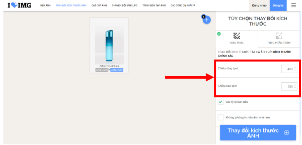 Thay đổi kích thước ảnh jpg online trên iloveimg.com