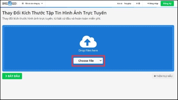 Bước 1: Mở trang web img2go.com > chọn Choose file > bạn có thể chọn hình ảnh từ trên thiết bị, từ Drobox, Google Drive hoặc từ URL ảnh trên Internet đều được.