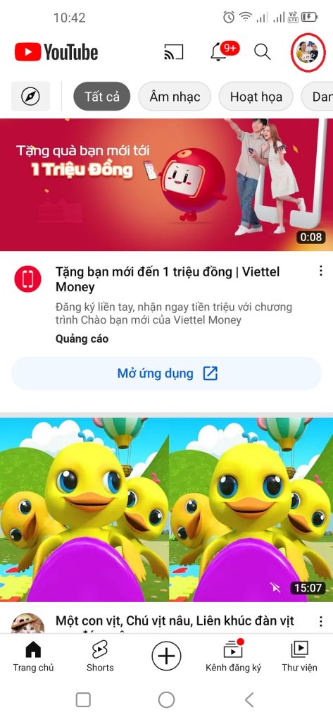 Bước 2: Nhấn vào biểu tượng avatar góc phải trên cùng của màn hình.
