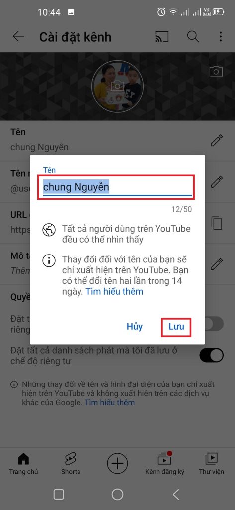- Có thể mất vài ngày để Youtube cập nhật tên mới.
