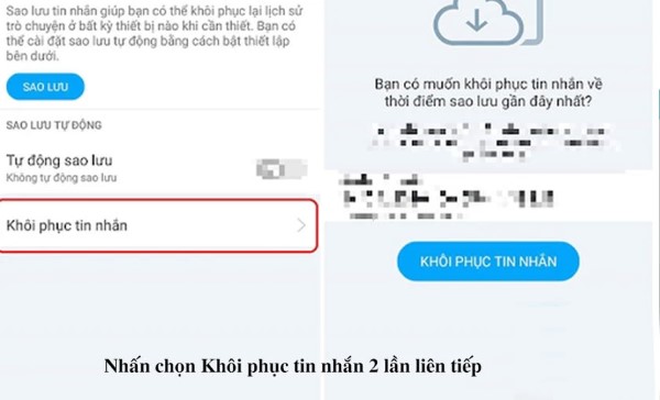 Bước 3: Ấn chọn vào tính năng Sao lưu và khôi phục > Chọn vào Khôi phục tin nhắn thêm một lần nữa sau đó chờ đợi cho nội dung tin nhắn mà bạn đã xoá được thu hồi.