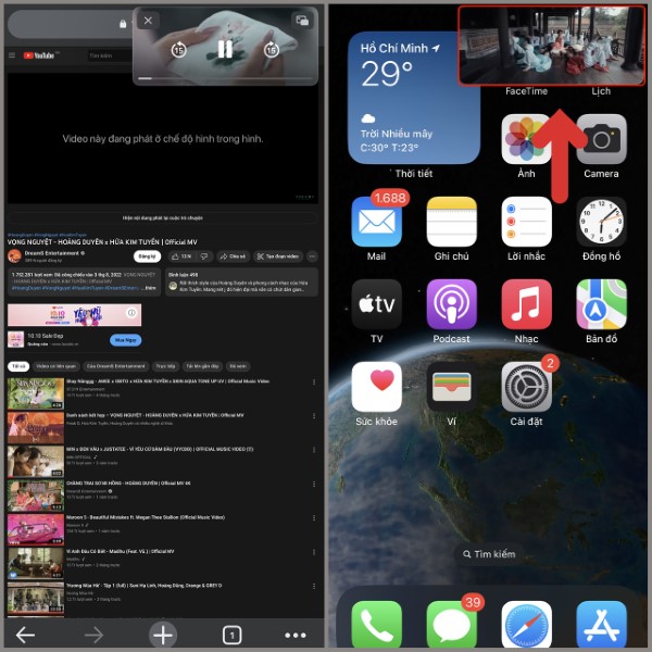 Video sẽ thu nhỏ và hiển thị ở góc màn hình