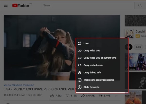 Nhấn chuột phải vào video để hiển thị menu tùy chọn