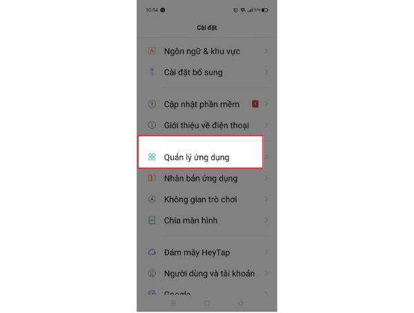 Tìm đến phần Quản lý ứng dụng