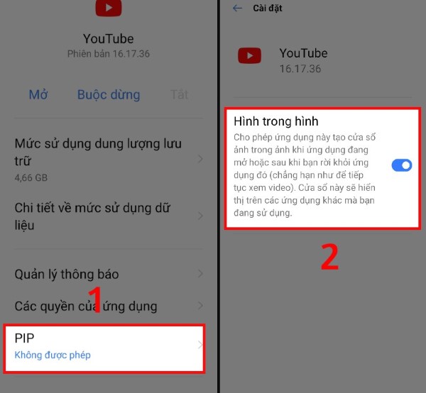 Bước 3: Kéo xuống và tìm đến PIP, sau đó kích hoạt chế độ Hình trong hình bằng cách gạt công tắc sang phải.