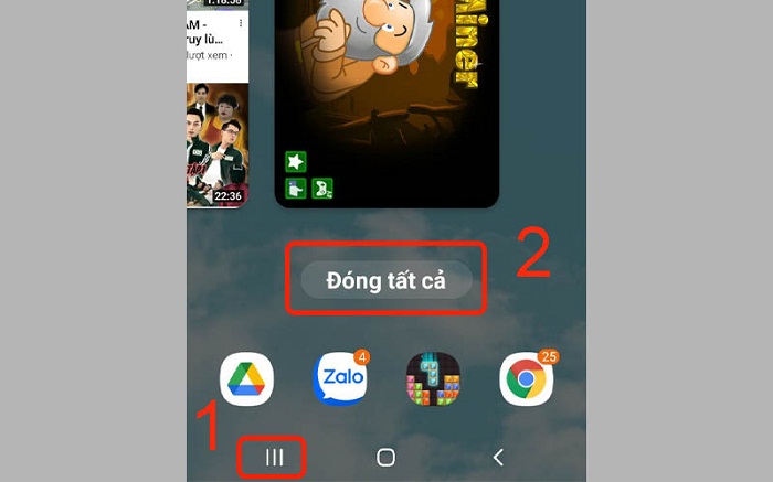 Vì vậy, thường xuyên đóng các ứng dụng chạy nền là một trong những cách tiết kiệm pin trên điện thoại OPPO khá hiệu quả và bạn có thể thực hiện bằng cách nhấn vào nút đa nhiệm > Chọn Đóng tất cả để đóng các ứng dụng chạy nền.
