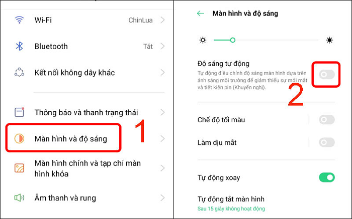 Giữ màn hình ở mức sáng vừa phải, tắt độ sáng tự động
