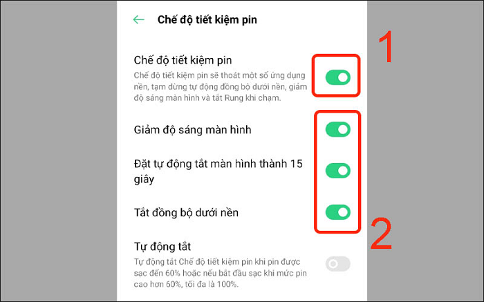 Chế độ tiết kiệm pin sẽ giúp tối ưu hóa thời lượng sử dụng pin điện thoại và tăng tuổi thọ pin. Khi bạn muốn sử dụng pin lâu hơn thì cần bật chế độ tiết kiệm pin lên. Điều này sẽ gia tăng thêm một lượng đáng kể thời gian sử dụng điện thoại đấy.