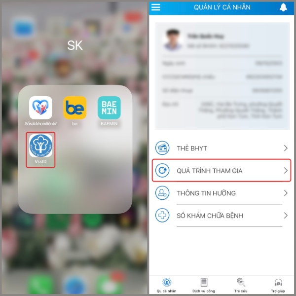Bước 1: Trước tiên bạn tiến hành truy cập vào ứng dụng VssID trên điện thoại. Nếu điện thoại bạn chưa có ứng dụng này thì có thế tải về từ CH Play hoặc App Store. Tiếp theo bạn chọn vào mục Quá trình tham gia.