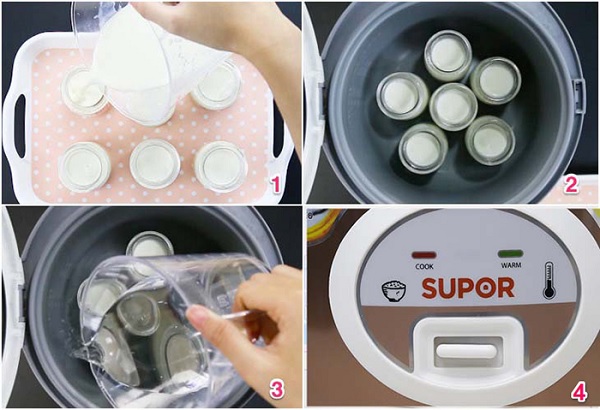Cách ủ sữa chua bằng nồi cơm điện cho 12 hũ.