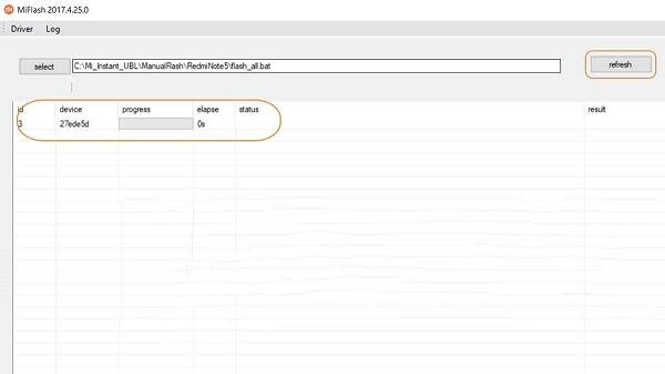 Bước 2: Tiếp theo, người dùng hãy mở Mi Flash Tool mà mình đã tải về và giải nén. Chạy tệp Xiao MiFlash.exe >>nhấn vào Refresh để kiểm tra xem máy tính xem đã kết nối với thiết bị hay chưa.
