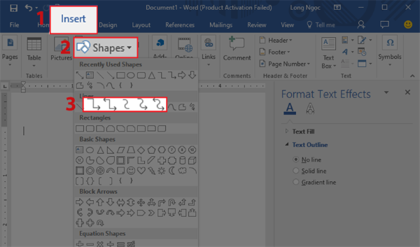 Cách vẽ mũi tên vuông góc trong Word
