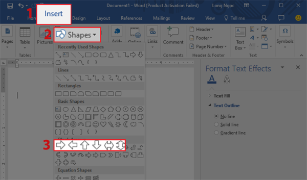 Cách vẽ mũi tên cong trong Word