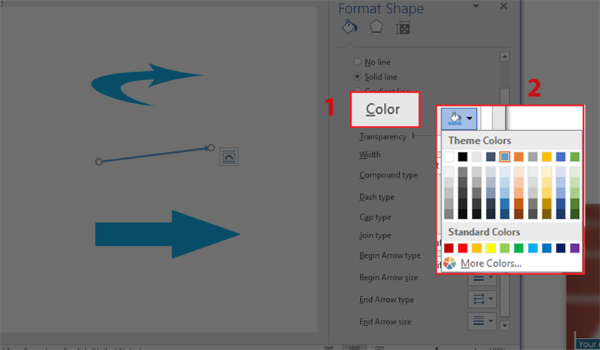 Bước 4: Nếu muốn thay đổi màu sắc, nhấn vào biểu tượng tam giác ngược ở mục Color > Chọn màu mũi tên theo sở thích.