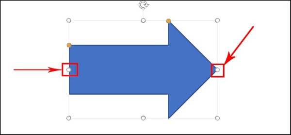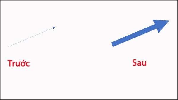 Bước 6: Để thay đổi chiều dài mũi tên, bấm chọn mũi tên > Giữ chuột trái vào nút tròn trắng ở hai đầu mũi tên và kéo sang trái hoặc phải để điều chỉnh độ dài mong muốn.