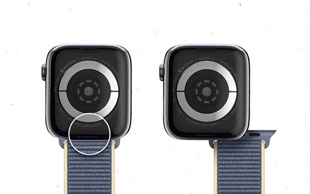 – Lật mặt sau của Apple Watch để nhìn thấy hai nút ở hai bên dây đeo.