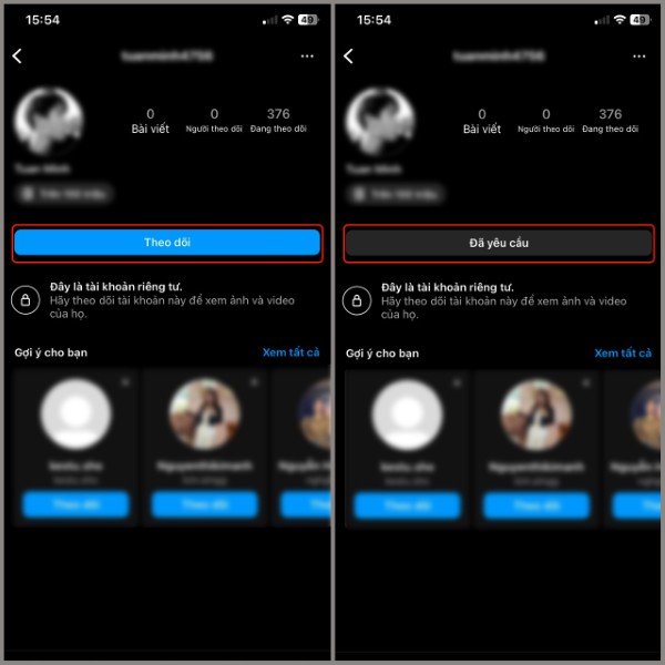 Hãy truy cập vào hồ sơ của người bạn muốn theo dõi, sau đó nhấn vào nút Theo dõi. Khi trạng thái chuyển thành Đã yêu cầu, nhiệm vụ của bạn chỉ là chờ phản hồi từ đối phương.