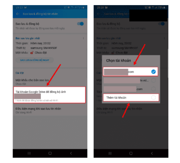 Bước 4: Chọn vào mục Tài khoản Google Drive để đồng bộ dữ liệu > Tiếp tục chọn mục Đổi tài khoản.