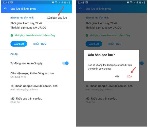 Cách xóa bản sao lưu Zalo trên Google Drive