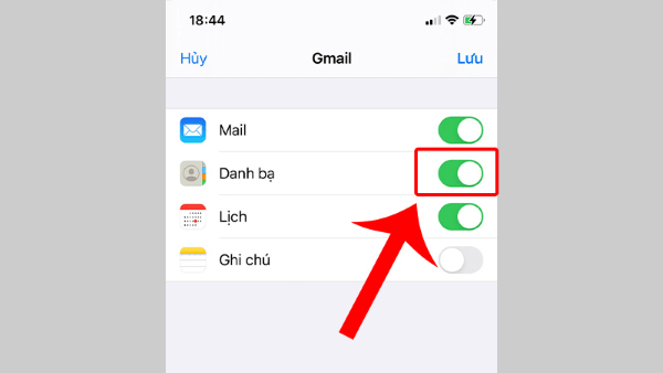 Bước 5: Gạt công tắc Danh bạ sang trạng thái bật → nhấn Lưu để hoàn tất.