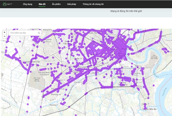 Bước 3: Lúc này, bản đồ phủ sóng sẽ hiển thị. Bạn có thể phóng to để tìm khu vực của mình. Những vùng có màu tím trên bản đồ là khu vực có sóng 5G.