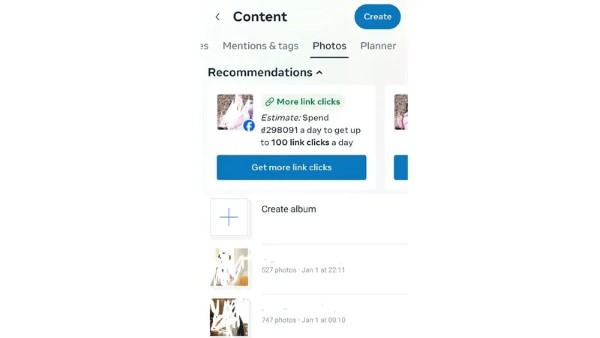 Thông thường, Meta Business Suite trên điện thoại sẽ hỗ trợ tùy chọn xóa album, trong khi phiên bản web có thể không cung cấp chức năng này. Nếu bạn cần xóa nhiều album hoặc ảnh cùng lúc, Meta Business Suite là lựa chọn phù hợp hơn thay vì thao tác trực tiếp trên Fanpage.