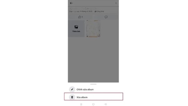 Bước 3: Khi mở album, tìm tùy chọn Chỉnh sửa album để hiển thị các chức năng quản lý. Nếu hệ thống hỗ trợ, bạn sẽ thấy Xóa album, hãy nhấn vào đó. Cuối cùng, xác nhận thao tác bằng cách bấm Xóa.