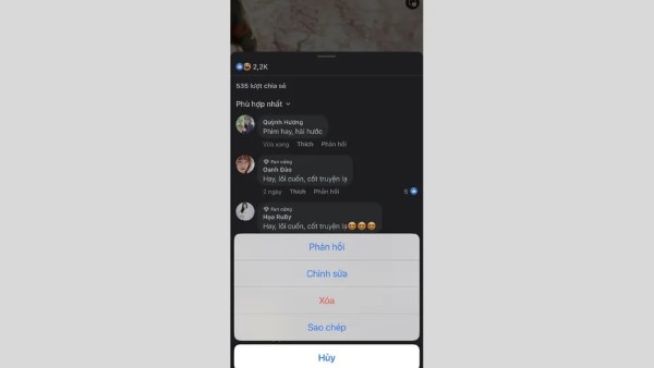 Thao tác tùy chỉnh bình luận Facebook trên thiết bị di động