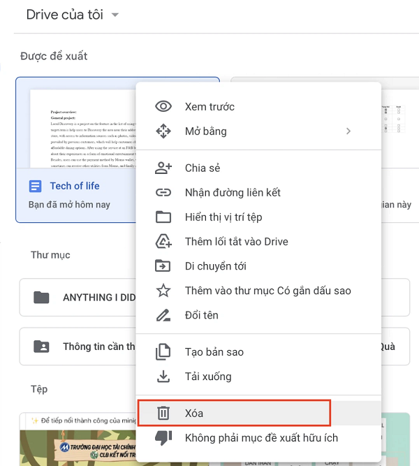 Bạn có thể thực hiện việc xóa File trên Google Drive theo các bước sau đây: