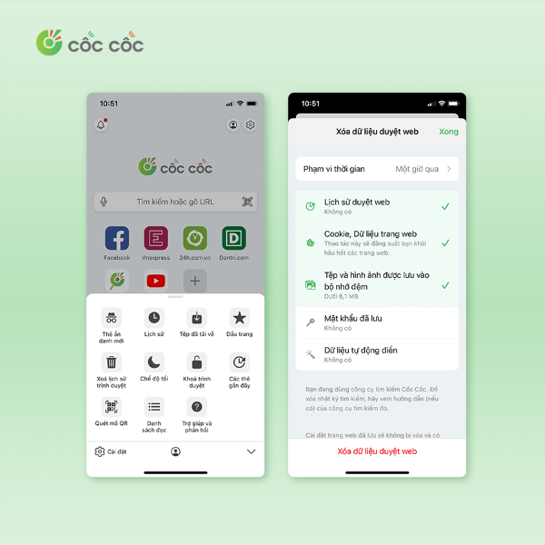 Cách xóa lịch sử Cốc Cốc trên điện thoại