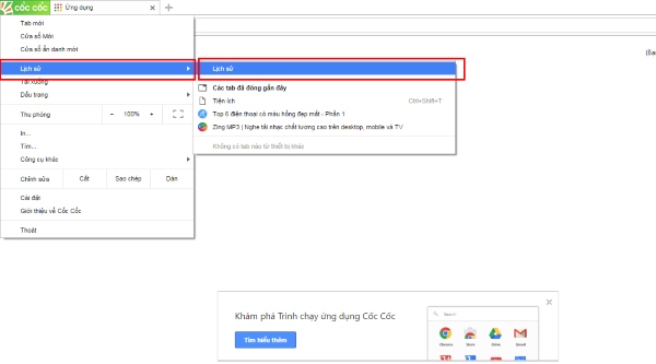 Cách xóa lịch sử tìm kiếm trên Cốc Cốc