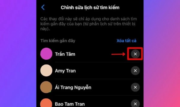 Thao tác Xóa lịch sử tìm kiếm Messenger trên điện thoại