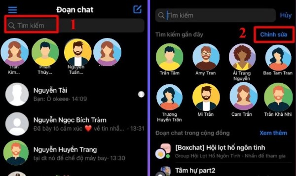 Bước 1: Truy cập vào Messenger trên điện thoại iPhone hoặc Android. Sau đó chọn vào thanh Tìm kiếm > Chọn Chỉnh sửa trên màn hình.