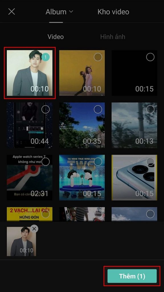 Bước 2: Chọn 1 hoặc nhiều video cần xoá nền hoặc chỉnh sửa. Sau đó chọn Thêm