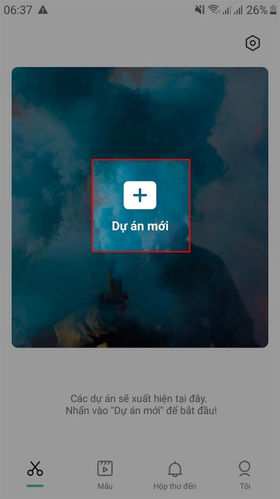 Bước 1: Mở ứng dụng Capcut trên điện thoại. Ấn vào dự án mới để bắt đầu.
