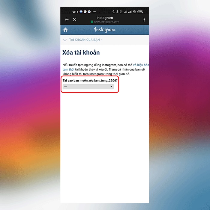 Cách xóa vĩnh viễn tài khoản Instagram trên điện thoại