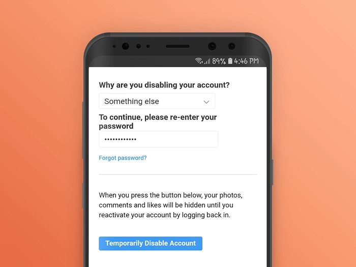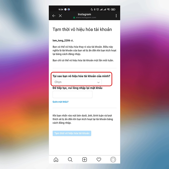 2. Xóa tài khoản Instagram tạm thời trên điện thoại, máy tính