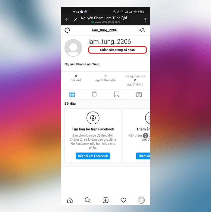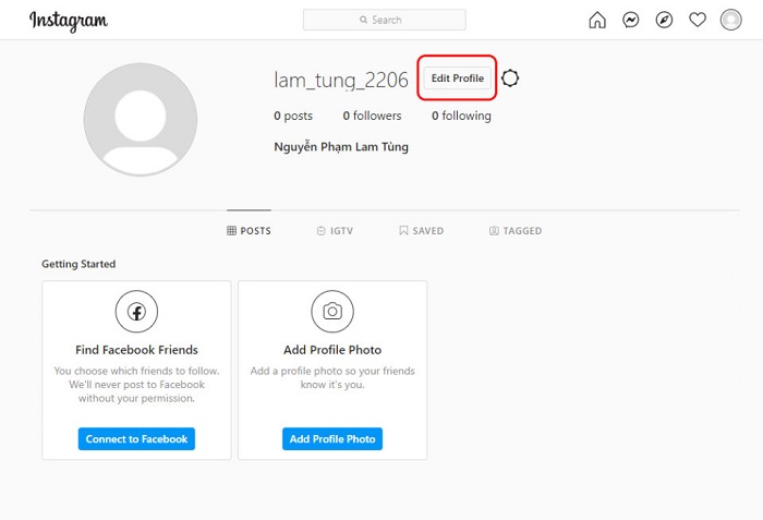 – Bước 3: Tiếp tục chọn vào nút “Edit Profile” ngay bên cạnh tên tài khoản.