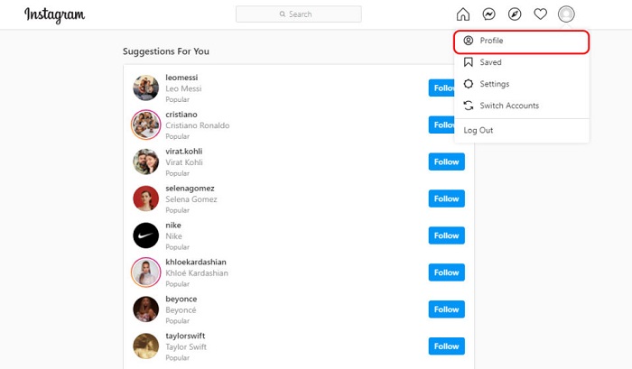 – Bước 2: Đăng nhập thành công -> chọn ảnh đại diện ở góc phải trên cùng của màn hình -> chọn tiếp vào “Profile”.