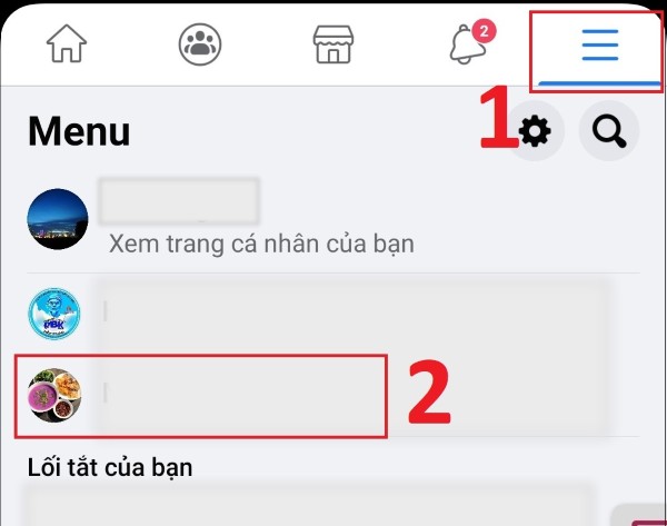 Bước 1: Mở ứng dụng Facebook, chạm vào biểu tượng Menu (3 dấu gạch ngang) ở góc trên bên phải đối với Android hoặc góc dưới bên phải với iOS, sau đó chọn fanpage cần xóa.