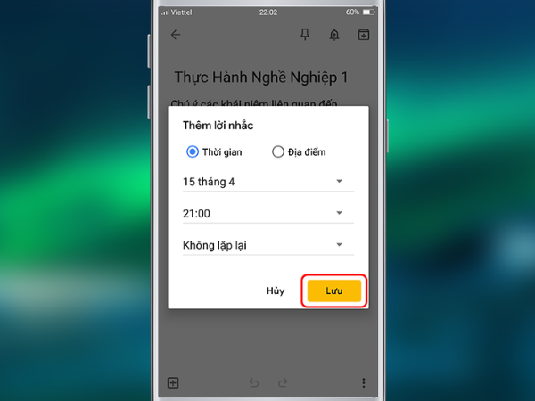 Sau khi chọn thời gian phù hợp, nhấn biểu tượng Lưu để hoàn tất.