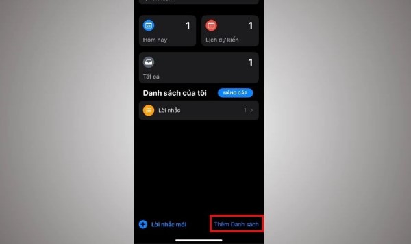 Bước 2: Nếu chưa có danh sách nhắc nhở, hãy tạo danh sách mới bằng cách nhấn vào Thêm danh sách ở cuối màn hình.