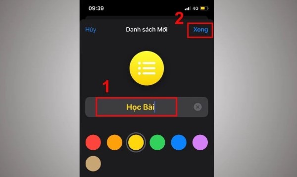 Bước 3: Đặt tên cho danh sách mới và tùy chỉnh màu sắc nếu muốn.