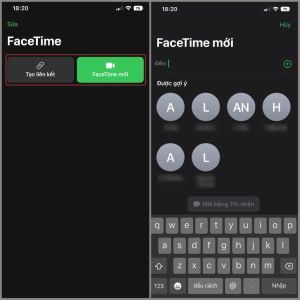 – Nếu chọn “FaceTime mới”, bạn nhập tên, email hoặc số điện thoại đã lưu trong danh bạ mà người đó dùng với Apple ID.
