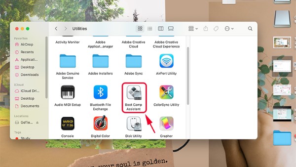 Bước 2: Vào thư mục Applications > Mở Utilities > Khởi chạy Boot Camp Assistant, sau đó chọn Continue.