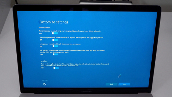Bước 8: Hoàn tất các bước thiết lập cơ bản cho Windows. Sau khi cấu hình xong, bạn đã có thể sử dụng Windows trên chiếc MacBook của mình.