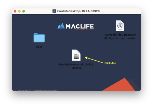 Bước 1: Sau khi tải về thành công, truy cập Finder > Mục Download và nhấp đúp vào tệp cài đặt Parallels Desktop 18.